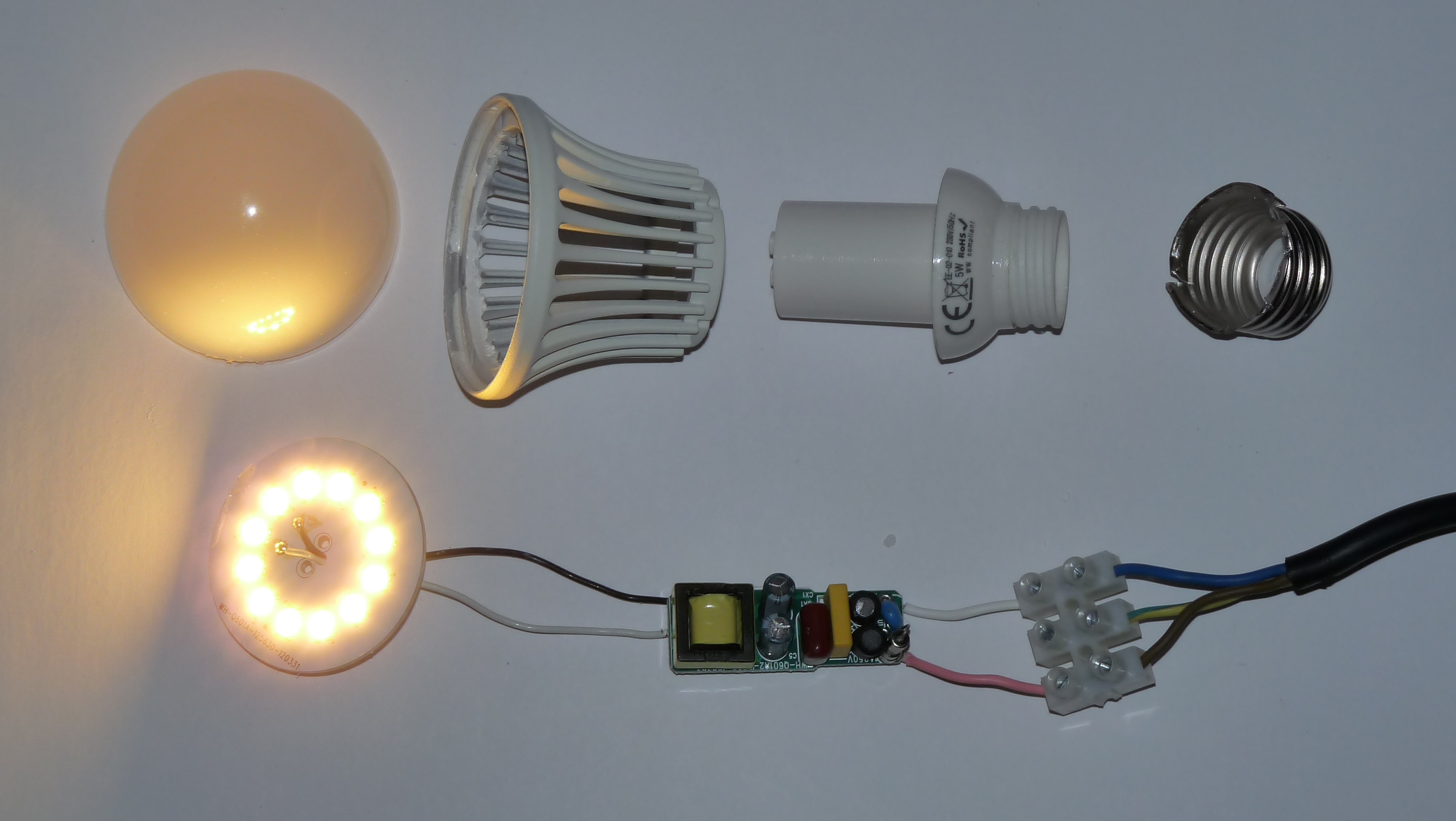 Sau đây là hình ảnh thật của một chiếc đèn đã tháo rời các bộ phận (CẤU TẠO CỦA BÓNG LED BULB):