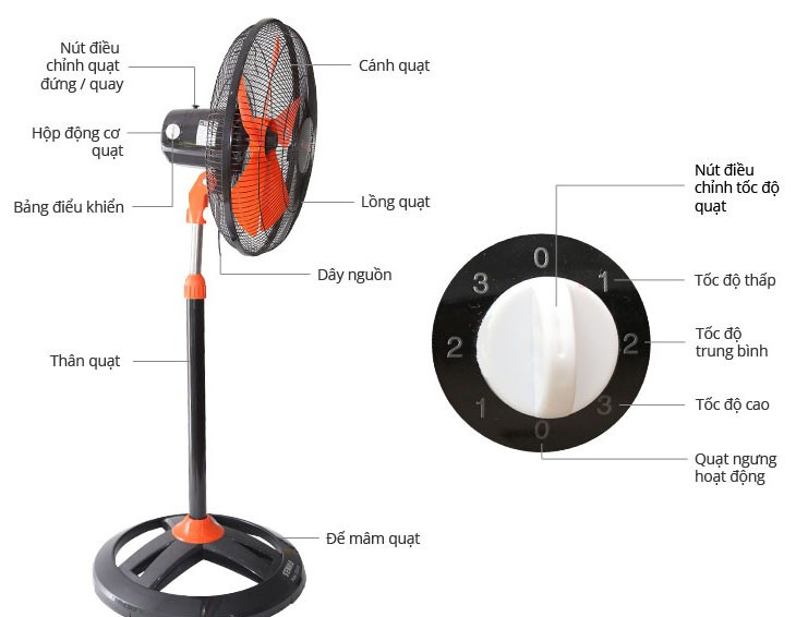 Quạt trang bị núm xoay điều chỉnh 3 tốc độ quay từ thấp tới cao (cao nhất 1200 vòng/phút) tạo luồng gió mạnh mẽ, làm mát căn phòng của bạn nhanh hơn. Ngoài ra, quạt đứng Senko DCN108 còn có nút chuyển hướng quạt rất tiện lợi.